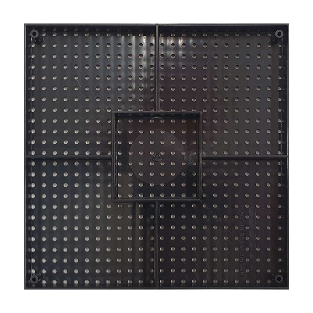På baksidan fäster du clips för att hålla ihop plattorna i din egenbyggda form. På framsidan finner du små hål där du fäster PEG-bokstäver för att forma ditt eget budskap.