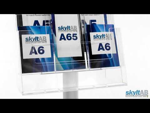 Broschyrställ och multiställ premium. Exklusivt ställ i en stilren designutförande. 4 st akrylfack där det finns plats för 4st A4 eller 8st A5 eller 12 A65 platser. Ett broschyrställ av hög kvalité och finish.