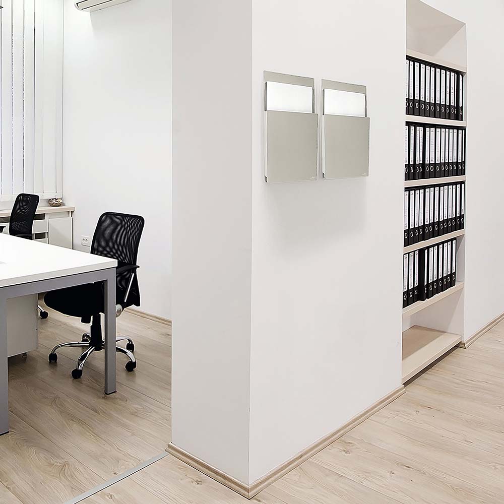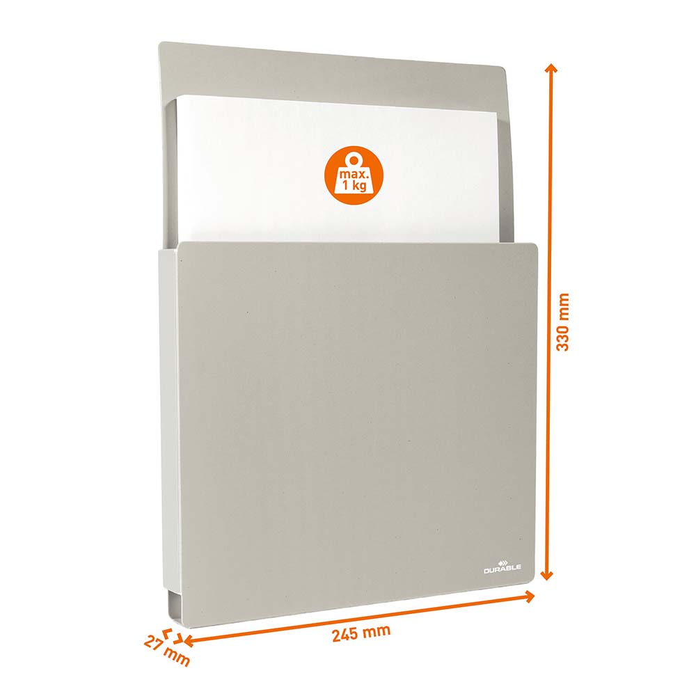 Tillverkad av återvunnen plast kombinerar den både hållbar lösning med praktisk funktion. Kapaciteten gör det möjligt att förvara flera dokument samtidigt och detta gör den idealisk för informationsblad, broschyrer och formulär i miljöer som kontor, verkstad, lager, butiker m.m.