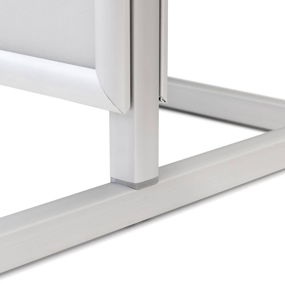 Aluminiumkonstruktionen ger skyltstället stabilitet utan att göra det onödigt tungt, vilket gör det enkelt att flytta vid behov. Det är också bra om du vill testa olika placeringar för att få bästa effekt av din marknadsföring. De praktiska snäppramarna gör det möjligt att snabbt byta affischer medan frontplasten ser till att affischen är skyddad och ser professionell ut.