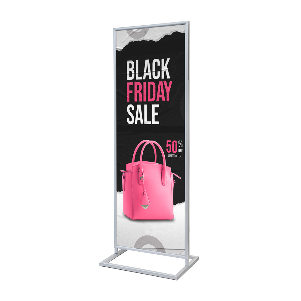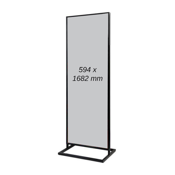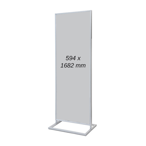 Detta stora, dubbelsidiga affischställ är perfekt för att lyfta fram nyheter, kampanjer, evenemang och annan marknadsföring i t ex butiker, köpcentrum eller i entréer och restauranger. Med en affischyta motsvarande två stående A1-format får du gott om utrymme att skapa iögonfallande posters.