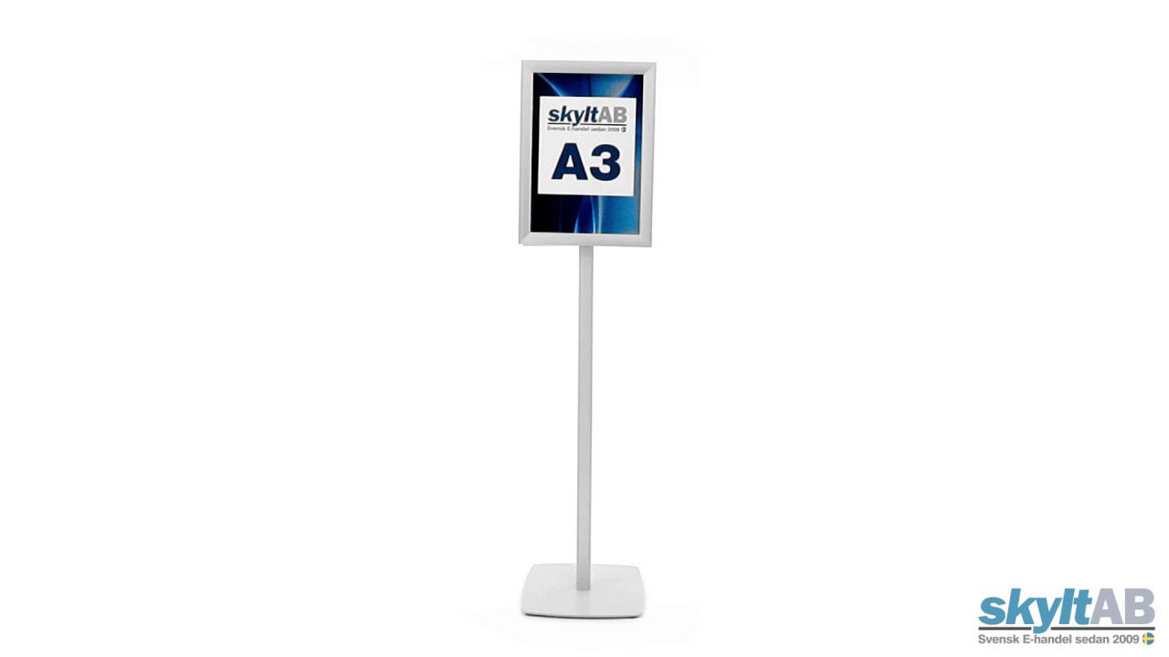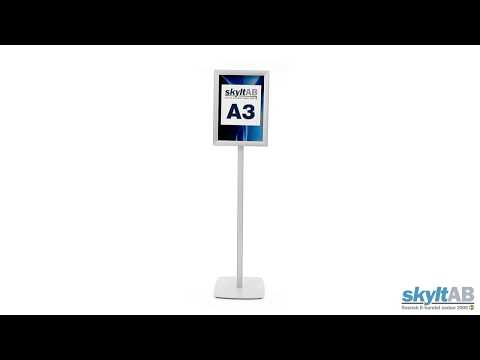 Infoställ Premium A3 Infoställ i stilren design med 2 stycken A3 snäppramar på var sida. Står stadigt tack vare en tillförlitlig tung fot. Snäppram med gerade hörn. Skyddsplast med antireflex ingår på båda ramarna.