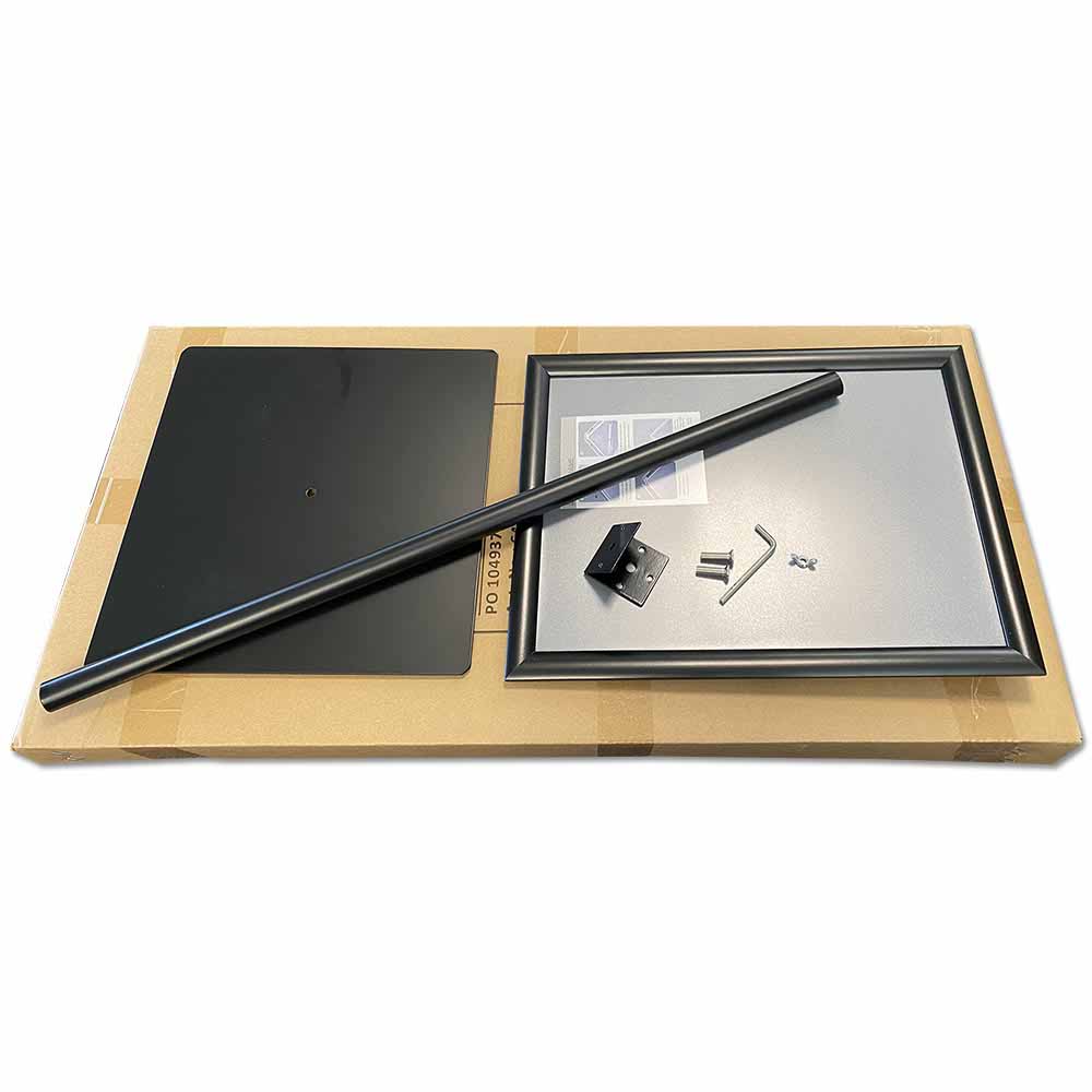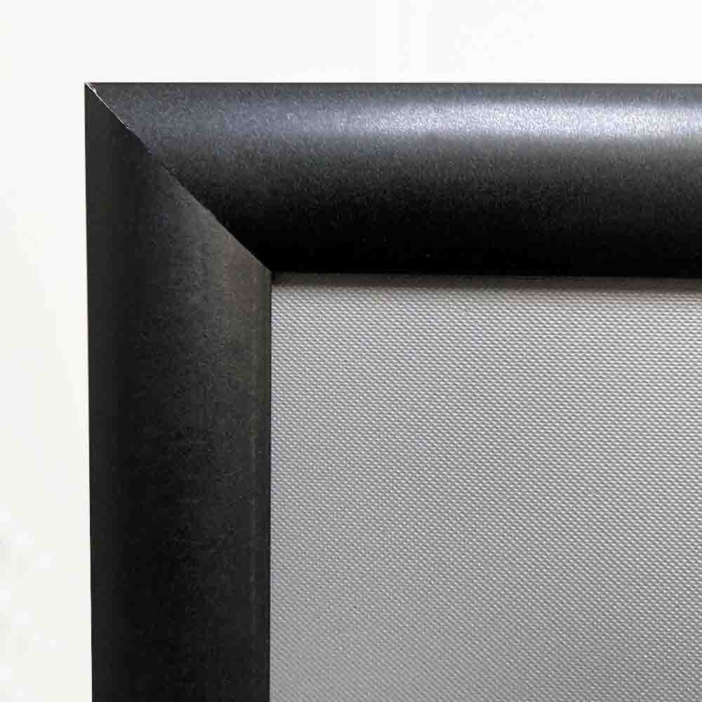 Snäppramen gör det enkelt att byta affisch och den stabila konstruktionen gör att skylten står stadigt i olika miljöer. Antireflexfronten bidrar till bättre läsbarhet även i ljusa utrymmen.