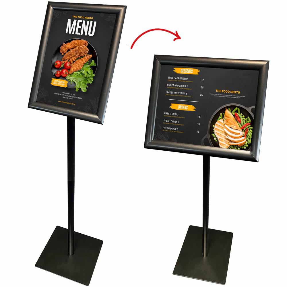 När du behöver mer synlighet är denna A3-modell ett bra val. Den större ytan gör att informationen syns tydligare, samtidigt som den vridbara funktionen ger flexibilitet i hur du visar ditt budskap.