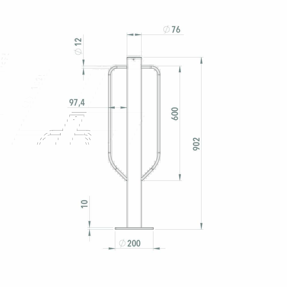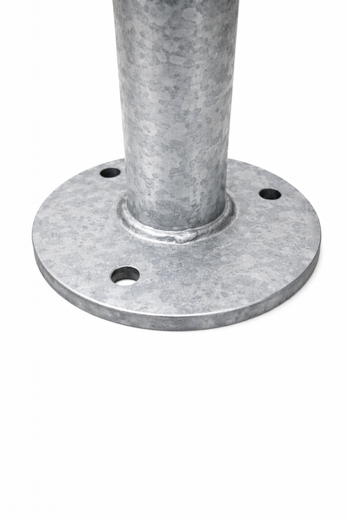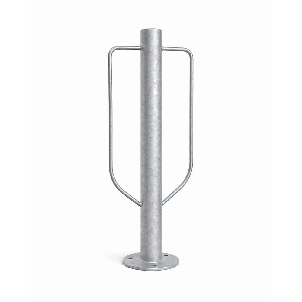 Stabil cykelpollare för offentlig miljö, fastigheter och företagsområden. Tillverkad i varmförzinkat stål och utformad för fastbultning i underlag via den kraftiga markplattan som är fastsvetsad på pollaren. Konstruktionen gör det möjligt att låsa fast två cyklar. Det galvaniserade stålet ger ett naturligt skydd mot rost och väderpåverkan.