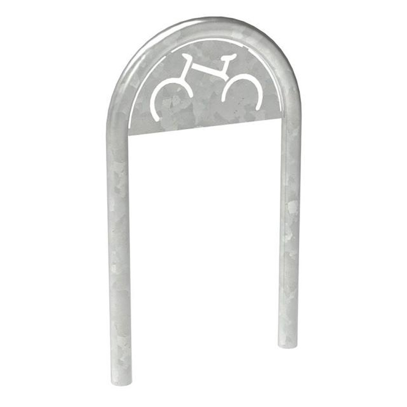 Galvaniserad låsbåge Ø60 mm med utskuren cykel – säker parkering för cyklar