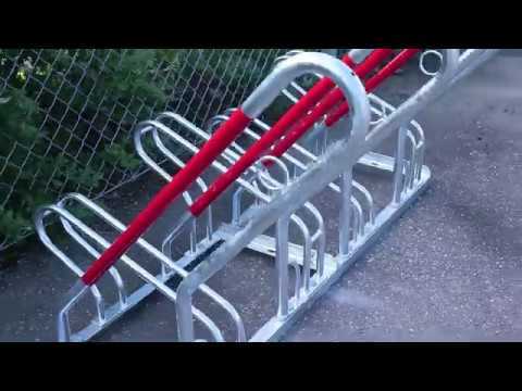 Cykelställ med stöldskydd. Detta är vårt mest populära cykelställ. Storsäljare i över 20 år till skolor & övrig offentlig miljö. Varmgalvaniserat cykelställ med hög och låg parkering för att spara utrymme. Går i efterhand att öka antal platser genom sammankoppling. Förberedda för markfästen. Enkelt att köpa till ny hjulhållare för att byta ut om olyckan varit framme.