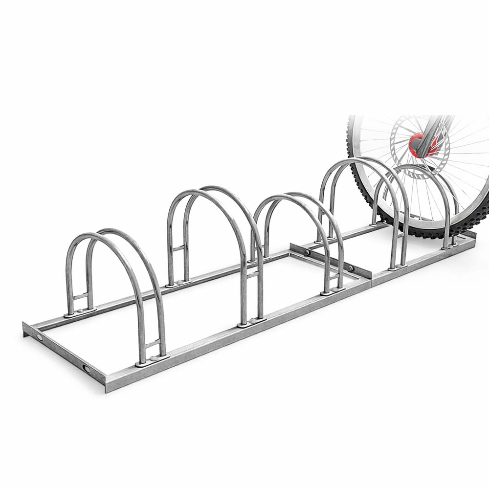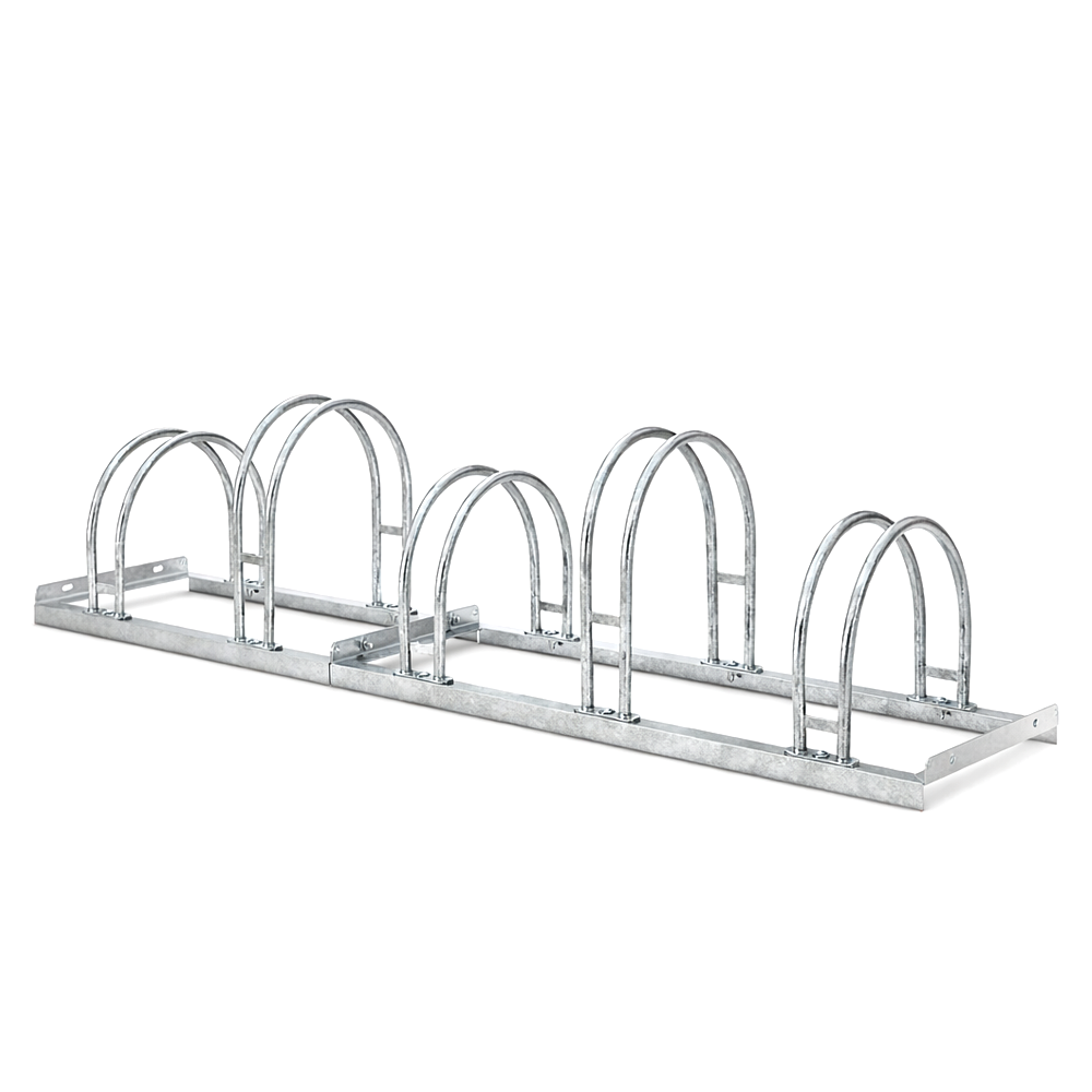 Cykelställ fem cyklar - modell 500 är tillverkat av varmgalvaniserad stål och har förborrade hål för enkel och snabb markmontering.