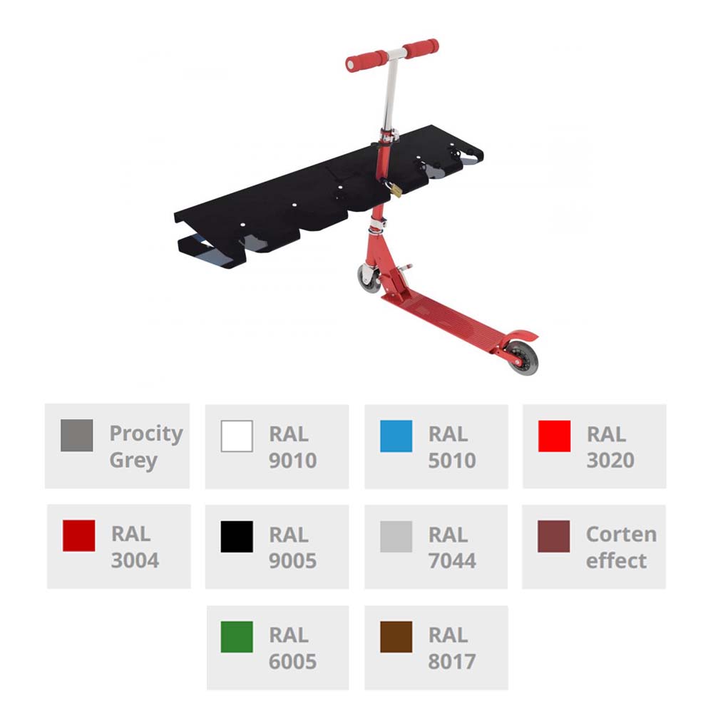 Denna hållare för sparkcyklar passar bland annat bra vid skolor och fritidsgårdar där hög popularitet av kickbikes och sparkcyklar finns. Sparkcykelstället är tillverkat av galvaniserat stål som sedan pulverlackerats för bästa möjliga skydd och finish.