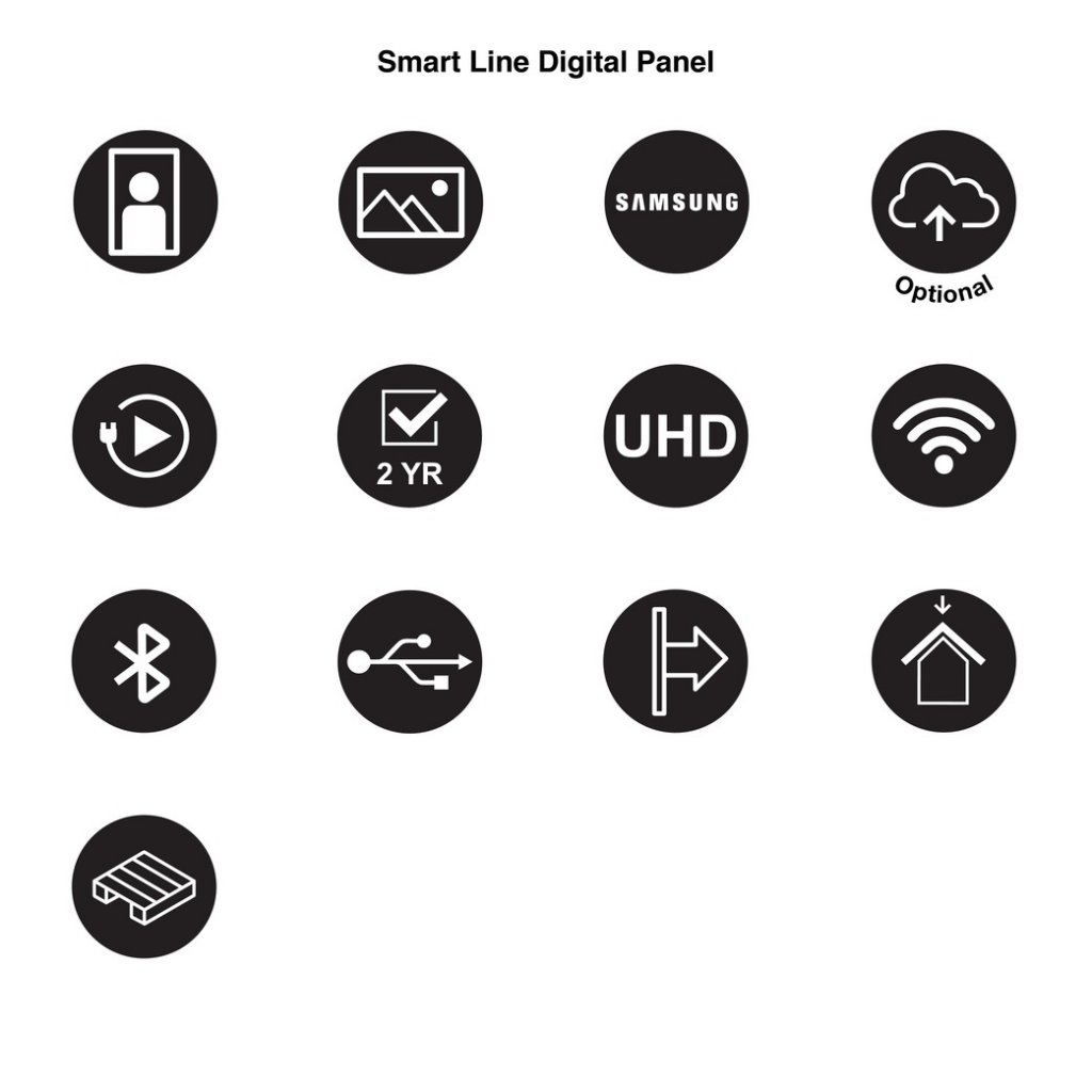 Smart Line Digital skärm 50" är en modern lösning för digital skyltning (digital signage) i butiker, hotell, skolor och andra offentliga miljöer. Den tunna ramen och den minimalistiska designen gör att budskapet står i fokus – perfekt för reklam, kampanjer eller information, både på vägg och upphängd från tak.