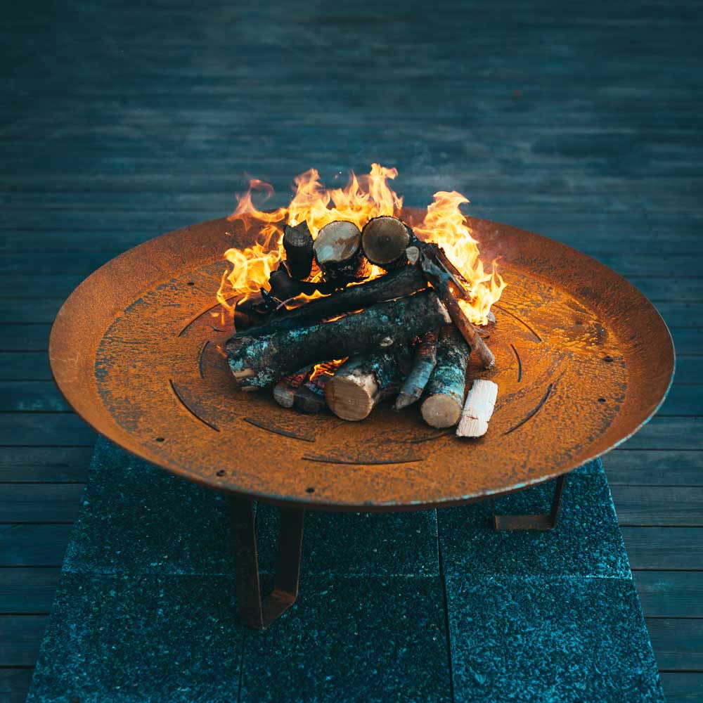 Elegent och vacker Eldstad i Cortenstål. Med Elegante eldstad skapar du en härlig stämning i din trädgård eller uteplats. Eldstad Elegante är också perfekt till offentliga platser där många människor kan samlas runtom. Såsom utomhusrestauranger, golfklubbar eller till uteplatsen. Eldstaden är tillverkat av cortenstål, som både ger patina och skönhet. Cortenstål är ett rosttrögt material som är vädertåligt, hållbart och underhållsfritt. När Cortenstålet blir fuktigt, blir hela materialet tjockare tack vare rostlagret som bildas ovanpå, till skillnad från vanligt kolstål som blir tunnare av rost.