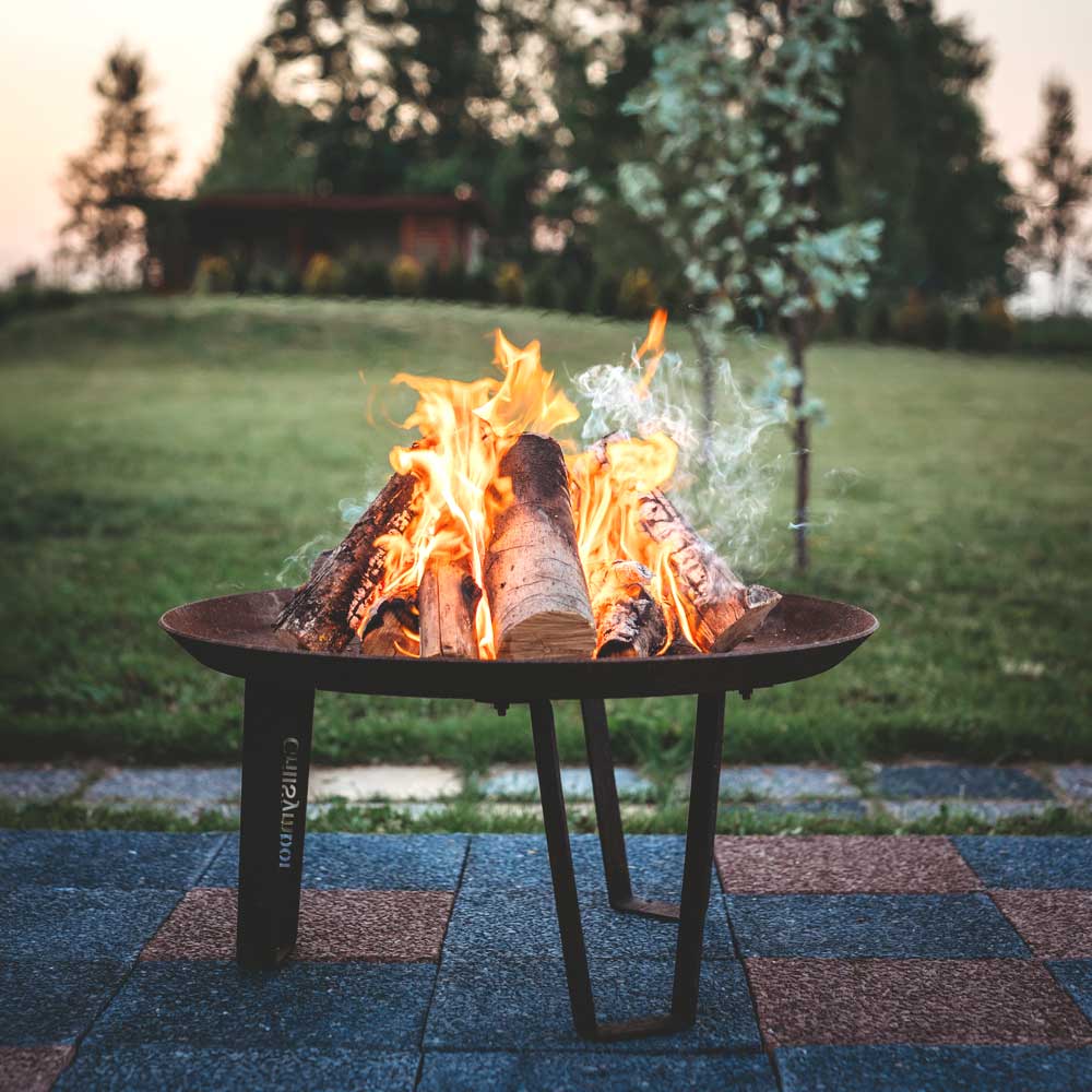 OBS: Produkten får inte placeras på ytor av trä eller andra brännbara material eftersom eldstaden blir för varm nedtill när man gör eld. Eldstaden har hål i botten där de kan falla ut små kolbitar och föra ut vatten så att eldstaden inte samlar upp vatten.