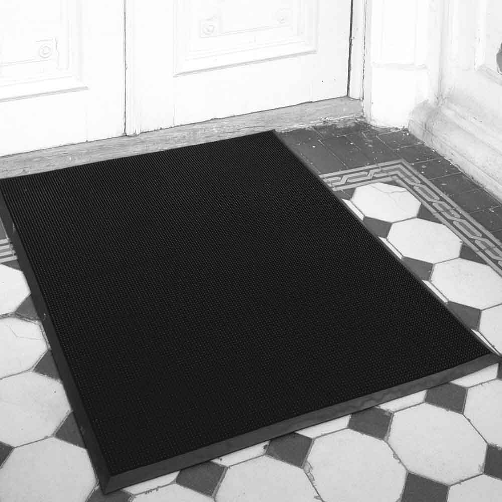 Skrapmatta Rubett i storlek 61x81 cm är en klassisk skrapmatta för både inomhusbruk och utomhusbruk som är effektiv att använda vid butiker, hotell, kontor och offentliga miljöer där människor går inomhus med skor. Denna entrématta med tät botten och tätt formade mjuka piggar skrapar bort grov smuts från skorna så att mycket grus, sten och väta stannar kvar i mattan. Rengöringen av denna matta är enkel då du bara behöver skaka eller skölja av den.