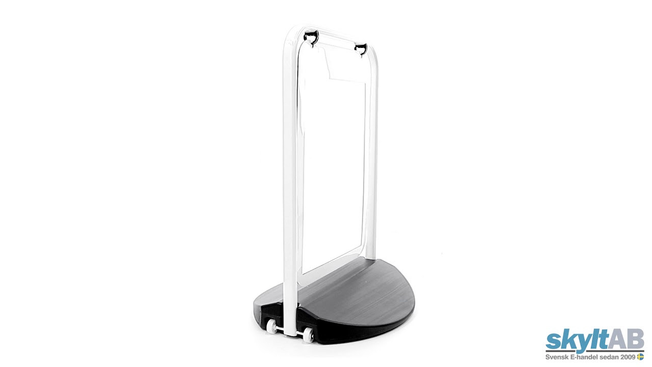 City Swinger sign 50x70 vit är en modern tappning och en smart hybrid mellan våra gatupratare city sign och wind wheel som här har blivit en supersmart skylt som står sig väl i vinden utan att ramla. De inbyggda hjulen på city swinger vit gör det lätt att flytta runt gatustället till önskad affischeringsplats. Praktiskt och användbart om den ska flyttas ut/in var dag från butiken, salongen eller kanske från affären. Denna gatupratare passar bra i citymiljö tack vare den runda baljan som lättare är igenkännbar för de som är behov av blindkäppar till vardags. Helt enkelt lite mer handikappvänlig en en skylt med stålben som lätt gör att blinkäppen fastnar i skylten. Baljan i botten på skyltstället fylls med sand eller när inte frostsäsongen är hos oss med vatten till önskad vikt. Självklart levereras denna skylt komplett med en smart magnetficka som håller regnet borta från de tryckta affischerna. Den smarta magnetfickan rör sig även i vinden på ett mycket säljande sätt och det krävs riktigt hårda vindar för att få denna reklamskylt på fall.