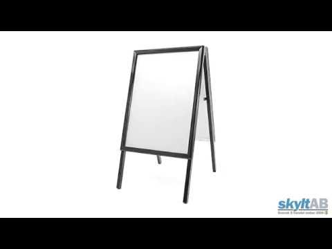 Gatuskylt Alu är ett sk. A-ställ tillverkad helt i aluminium för lång livslängd. Försedd med 2 st snäppramar för enkelt byte av budskap. Ett set av frontplast ingår vid köpet. Vi rekommenderar även att ni köper extra frontplast 5-pack som tillbehör så detta finns på plats den dagen som byte av skyddsplast behöver göras.