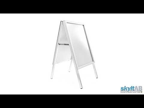 Gatupratare Alu sign A0 är Skyltabs mest populära skyltställ när det kommer till inomhusanvändning. En gatupratare utfört i klassiskt A-design ett sk A-ställ vilket gör att skylten tack vare sina gångjärn i ovankant fälls ihop så den blir näst intill platt när den fälls ihop och kan enkelt stuvas undan när den inte används. Du skyddar printmaterialet med frontplast som medföljer. Trottoarstället Alu A0 är en skylt i silverfärg med lätt vikt som är enkel att flytta runt. Perfekt utanför en entré eller inne i lobbyn.
