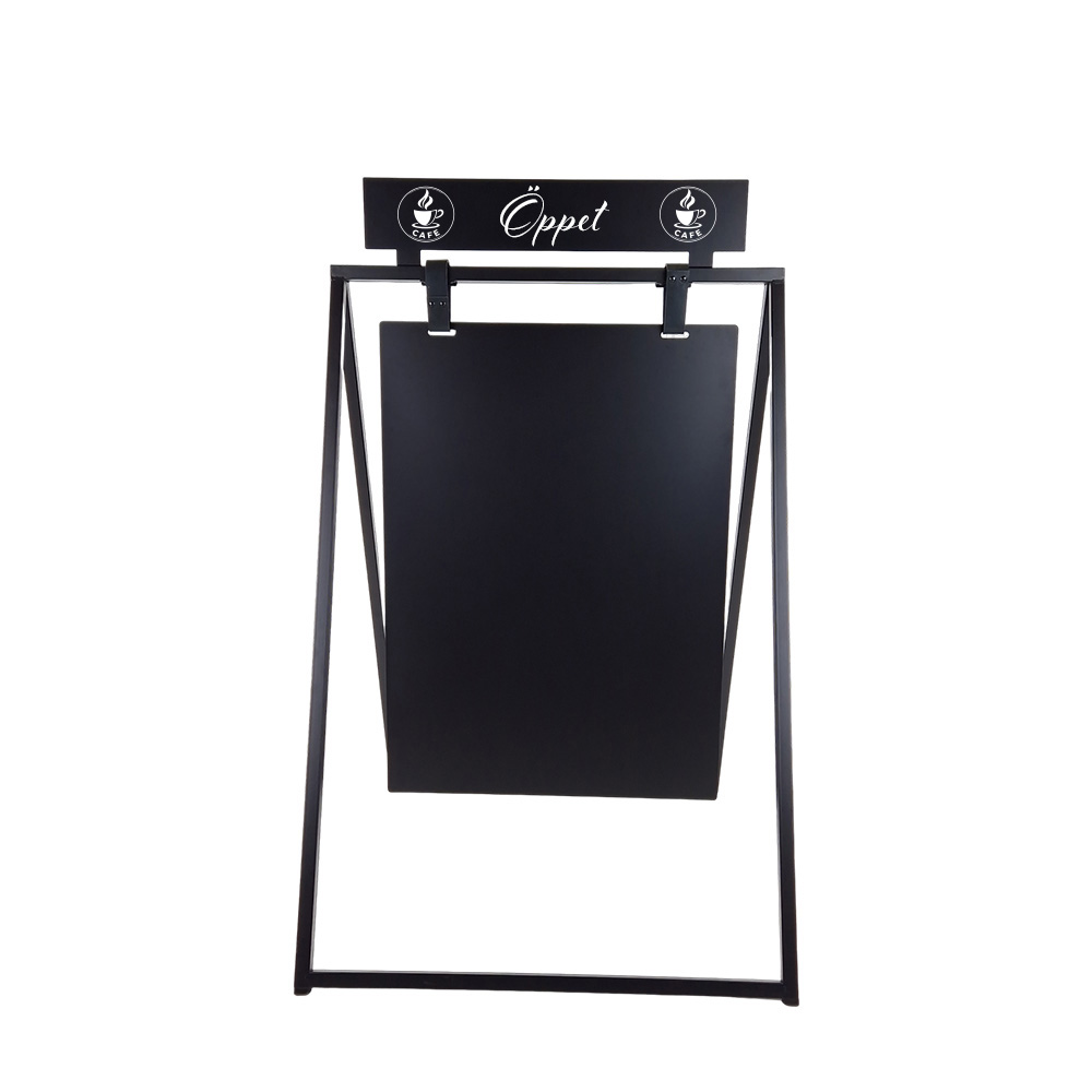 Den magnetiska ytan gör det enkelt att byta affisch i 50×70 cm eller att använda skylten som griffeltavla. Det gör modellen lämplig för restauranger, caféer och hotell som vill kunna ändra information utan att kompromissa med helhetsintrycket.