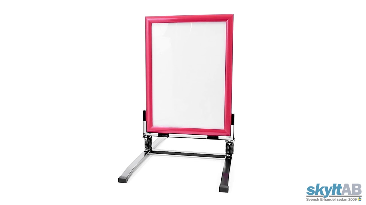 Trottoarpratare wind sign är ett skyltställ som klarar tuffa förhållande och har en lång livslängd tack vare sin fjädrar som gör att skylten svajar i vinden. Detta gör denna gatupratare som den skylt som klarar av svåra vindar bäst av alla i vårt breda skyltsortiment. Gatupratare windsign är försedd med två rygg mot rygg placerade snäppramar av vår kraftigaste variant. Mellan dessa snäppramar är en kraftig ryggskiva monterad. Trottoarpratare Wind även kallad för Wind Sign är tillverkad i robust stål. Gatustället finns i kulörerna vit, röd, svart samt natureloxerad (silver). Ett set av frontplast ingår när ni får skylten men eftersom frontplaster blir slitna och tråkiga med tiden speciellt för utomhusbruk så rekommenderar vi extra frontplast som tillbehör så ni har detta på plats när väl byte kommer behövas.