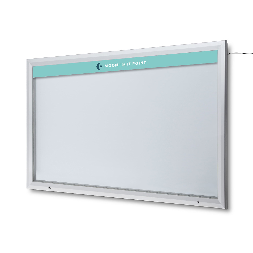 Med integrerad LED-belysning syns din reklam och information även i mörker. Skyltskåpets magnetiska och vitlackerade bakstycke gör det enkelt att fästa affischer med magneter och magnetplast. Eftersom bakstycket är lackerat kan du också använda detta låsbara skyltskåp som en anslagstavla utomhus. Perfekt för att visa upp affischer, reklam, viktig information eller menyer på ett tydligt och organiserat sätt.