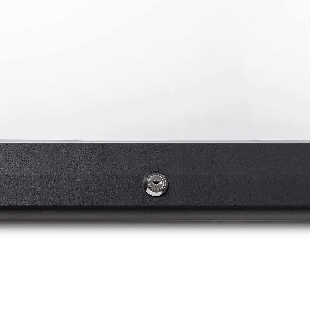 Låsbara skyltskåp för utomhusbruk - Väderbeständig IP56 Certifierad. Svart kraftig ram med lackerad stålplåt. Låsbar främre front med silikonpackningar för bättre väderbeständighet. Backstycke för användning av magneter eller markeringspennor. 25 mm djup på insidan av skåpet.
