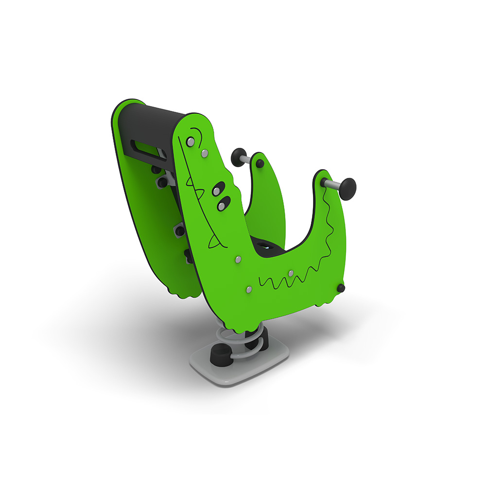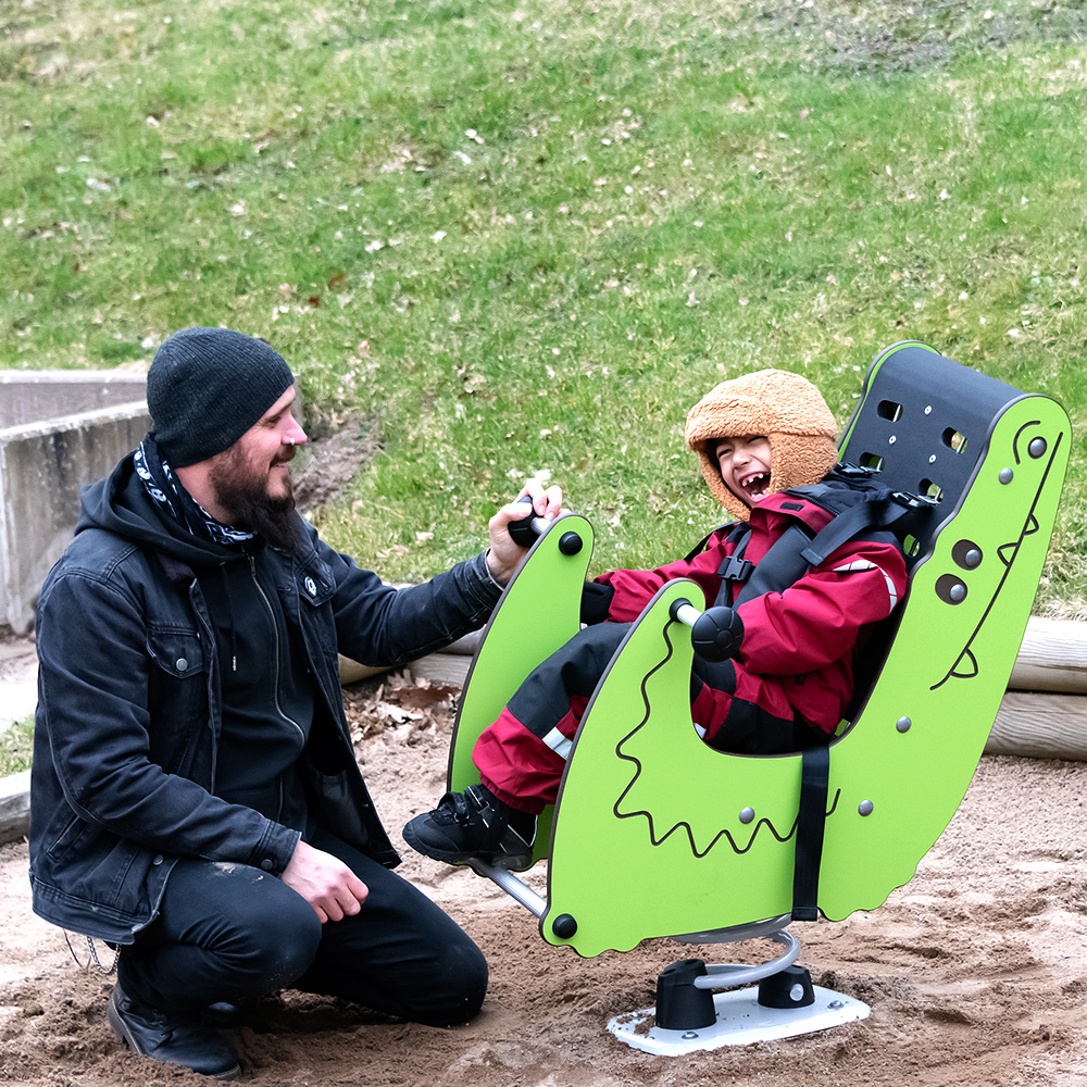 Fjädergunga Snappy, formad som en krokodil, är särskilt tillgänglig och passar barn mellan 2 och 5 år. Med sitt höga ryggstöd på 550 mm och möjligheten att fästa en säkerhetssele, erbjuder Snappy lek som inkluderar alla barn.