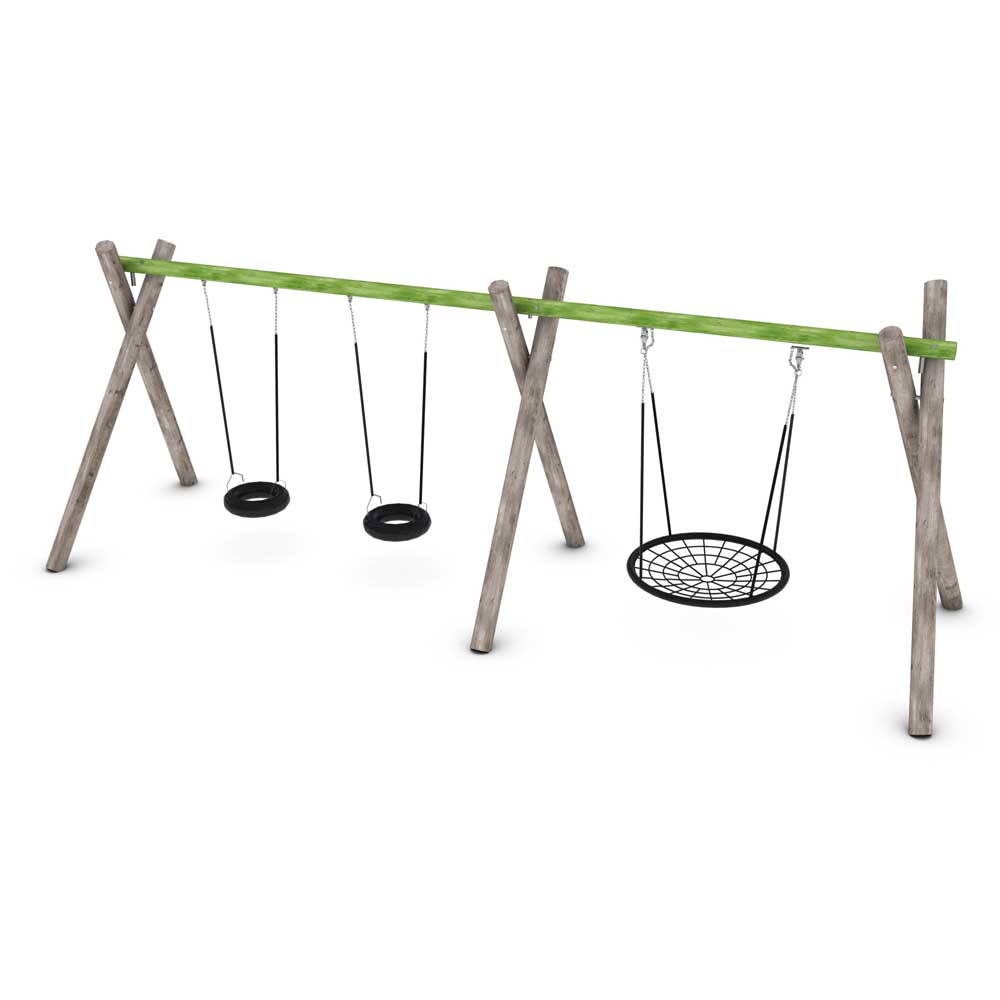 Här finns möjligheten att komplettera lekplatsen med en gungställning som både har den populära fågelbogungan och välja till två extra gungor. Anpassa efter barnens behov och lägga till om någonting sankas på lekplatsen.