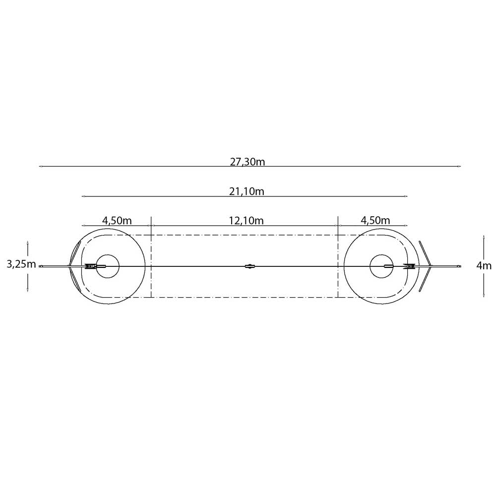 Linbana Dino är designad för 2-vägs åkriktningar och har ingen plattform. Denna linbana ska monteras på befintliga kullar som ska användas som plattform där barnen åker ifrån.