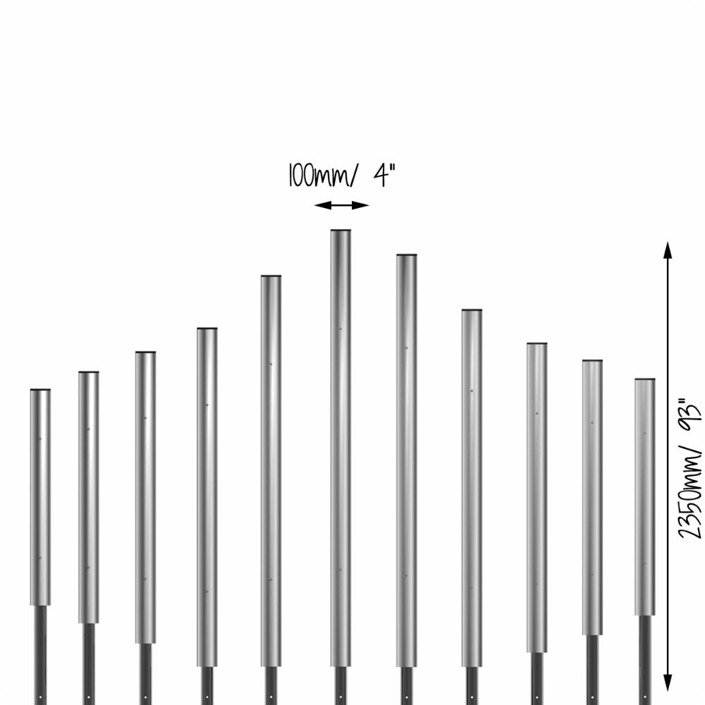Colossus Chimes är ett set med 11 klockspel som är stämda i C-dur Pentatonisk (C3-C5). Detta utomhusinstrument är byggt med hållbart aluminium för att klara av tuffa miljöer och har en höjd som sträcker sig från 1,6 m till 2,4 m.
