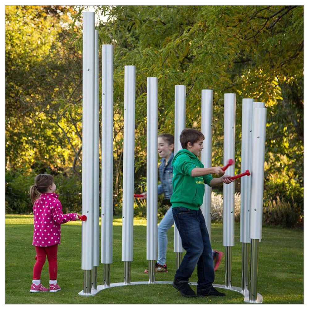 Colossus Chimes är fantastiska sensoriska och interaktiva föremål som är perfekta för musikterapi, sensoriska trädgårdar och inkluderande lekplatser. Spelare kan känna ljudet resonera genom hela kroppen när de slår på klockspelet med klubborna.