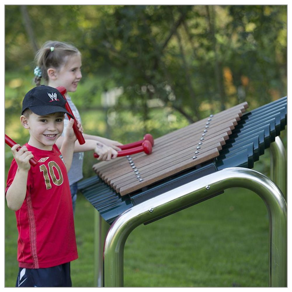 Grand Marimba för utomhusbruk är ett imponerande musikinstrument som används främst på skolor och lekplatser. Detta robusta instrument producerar en kraftfull djup och resonant ljud som passar perfekt skol lekplatsutrustning för musikterapier och kreativa inkluderande lekplatser.