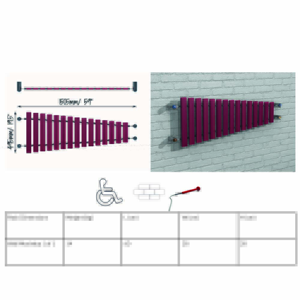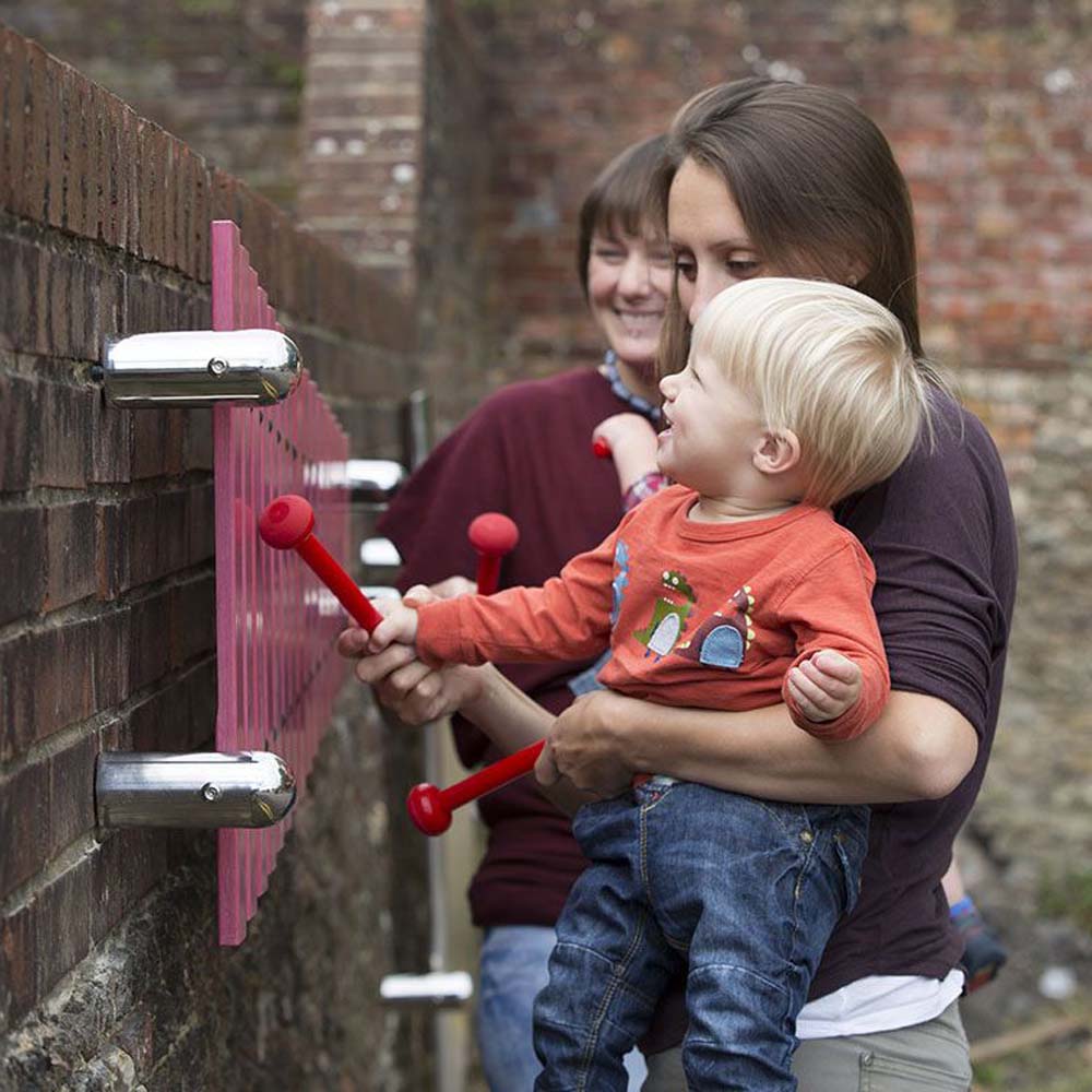 Låt lekplatsen bli mer musikalisk med en väggmonterad marimba, det perfekta musikinstrumentet för utomhusbruk! Marimban är tillverkad av högkvalitativt och förstärkt plastmaterial som är polerat för att ge en glansig yta. Detta ger en robust och hållbar konstruktion som tål alla väderförhållanden.