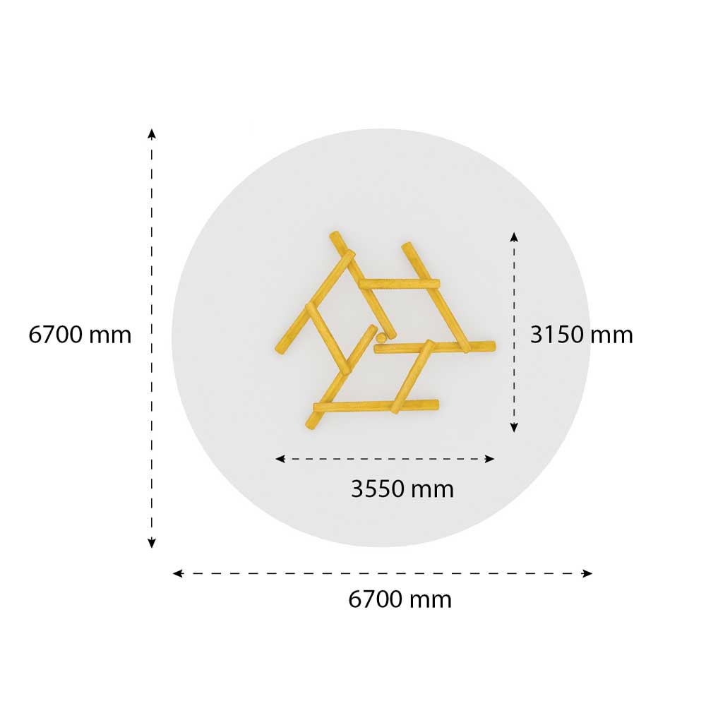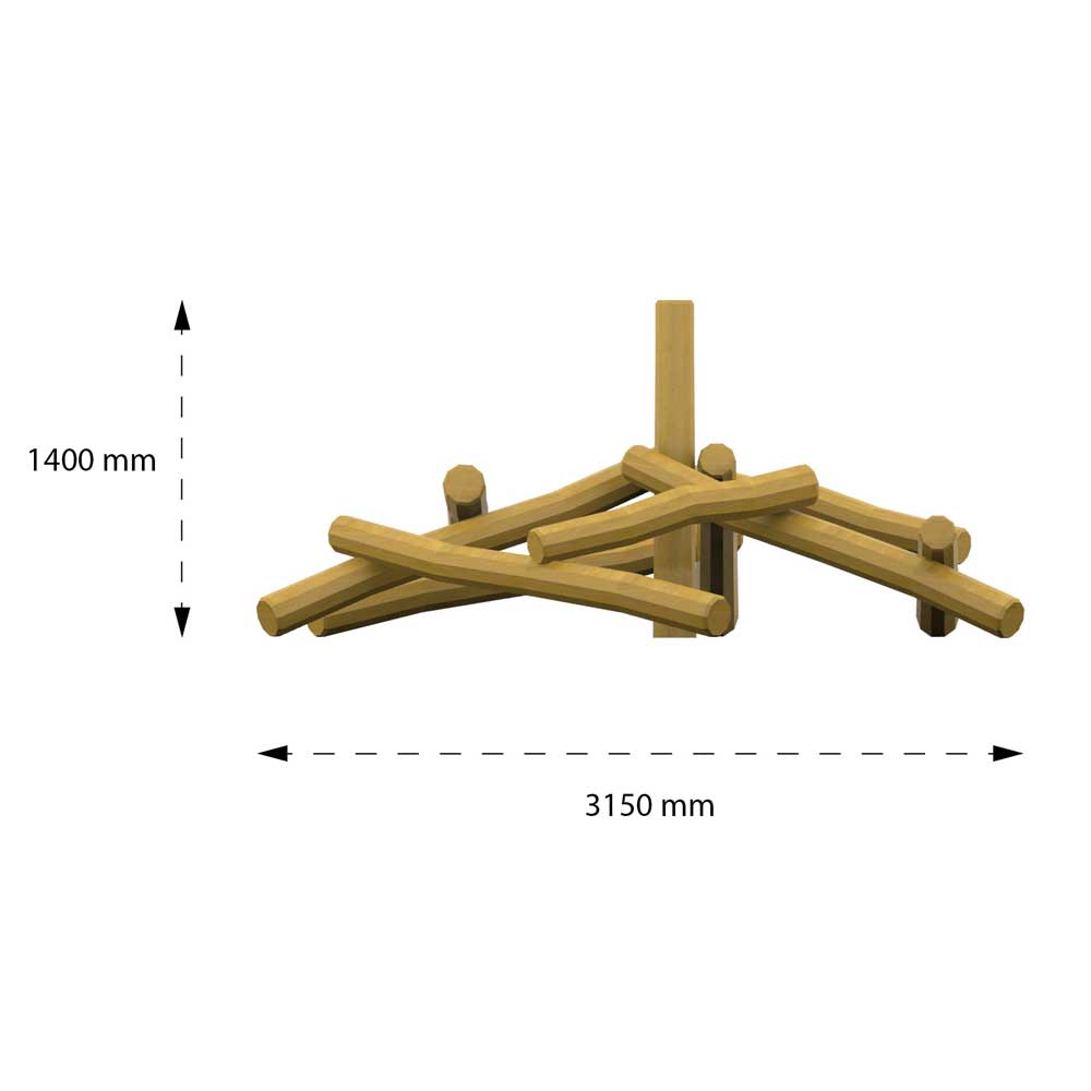 Riara klätterpyramid är en utmanande lekplatsutrustning tillverkad på Robina som ger pyramiden en intressant design. Att använda fantasin, kreativitet och kroppen kan denna hög med stockar bli ett fort eller något annat spännande. Lekutrustning ifrån Naturlek har en speciell prägel som är utformad för att uppmuntrar barn att utmana sina egna idéer och påhittigheter. Riara stockpyramid bjuder in till många grupplekar och rollspel, samtidigt som balans och koordinationsträning stärks upp och barn kommer få en högre förståelse och kontroll över sin kropp.