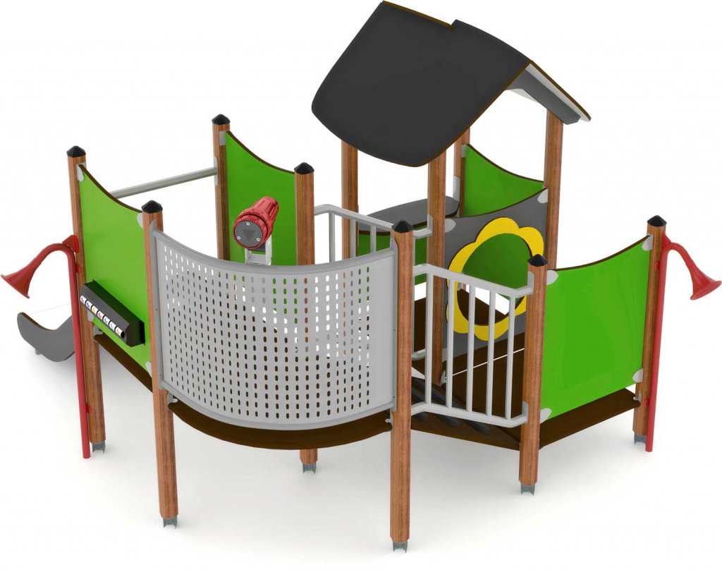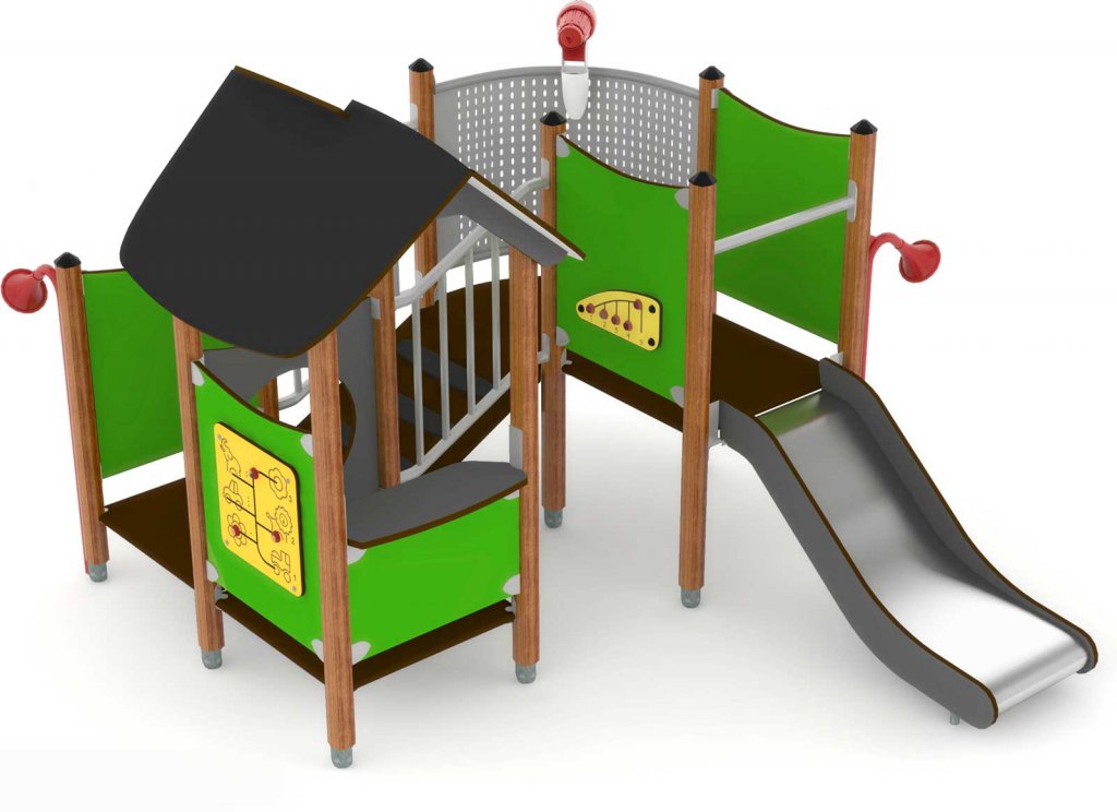 Ett lekhus med rutschbana och trappa till tornet. En klassisk lekställning i modernt utförande som passar perfekt inne på gården i din BRF men också i offentliga lekplatser i både stadsmiljö och park. Lekställningen finns i flera färger.