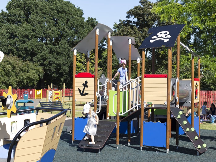 Varför inte gynna parken eller skolgården med en mångsidig lekställning i form av ett piratskepp. Kika då in denna tuffa och spännande piratborg!