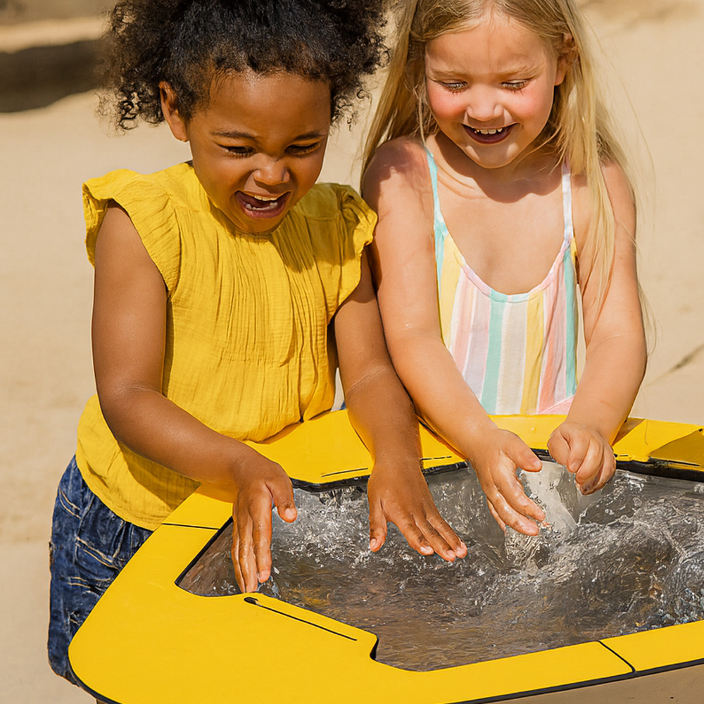 Förvandla sandlådan till en populär vattenfylld lekupplevelse med denna praktiska vattenleksak. Detta triangelbord för vattenlek finns i grå eller klar gul eller grön kulör. Den gula och gröna färgen drar till sig barnens uppmärksamhet och gör denna vattenleksak extra rolig.