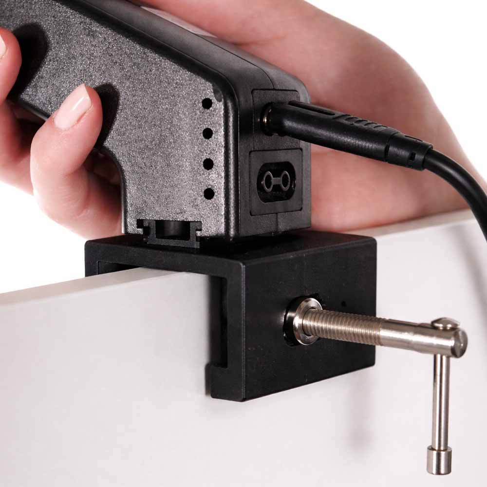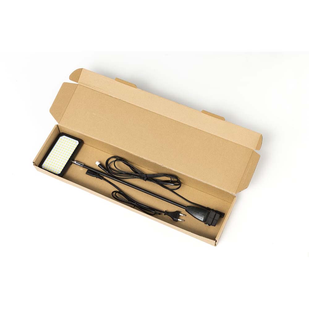 Ljuset är neutralt och jämnt, vilket gör att tryck och grafiska ytor framträder tydligt utan att färgerna upplevs kalla eller varma. Du kan placera strömkontakten på baksidan eller på vänster eller höger sida beroende på hur din monter är uppbyggd.