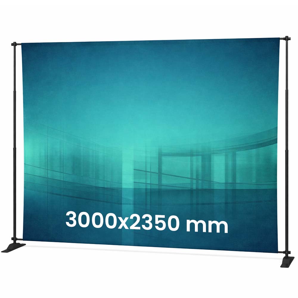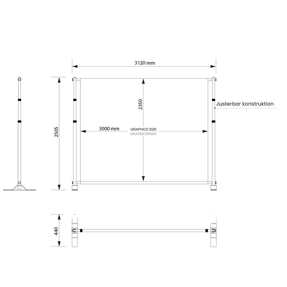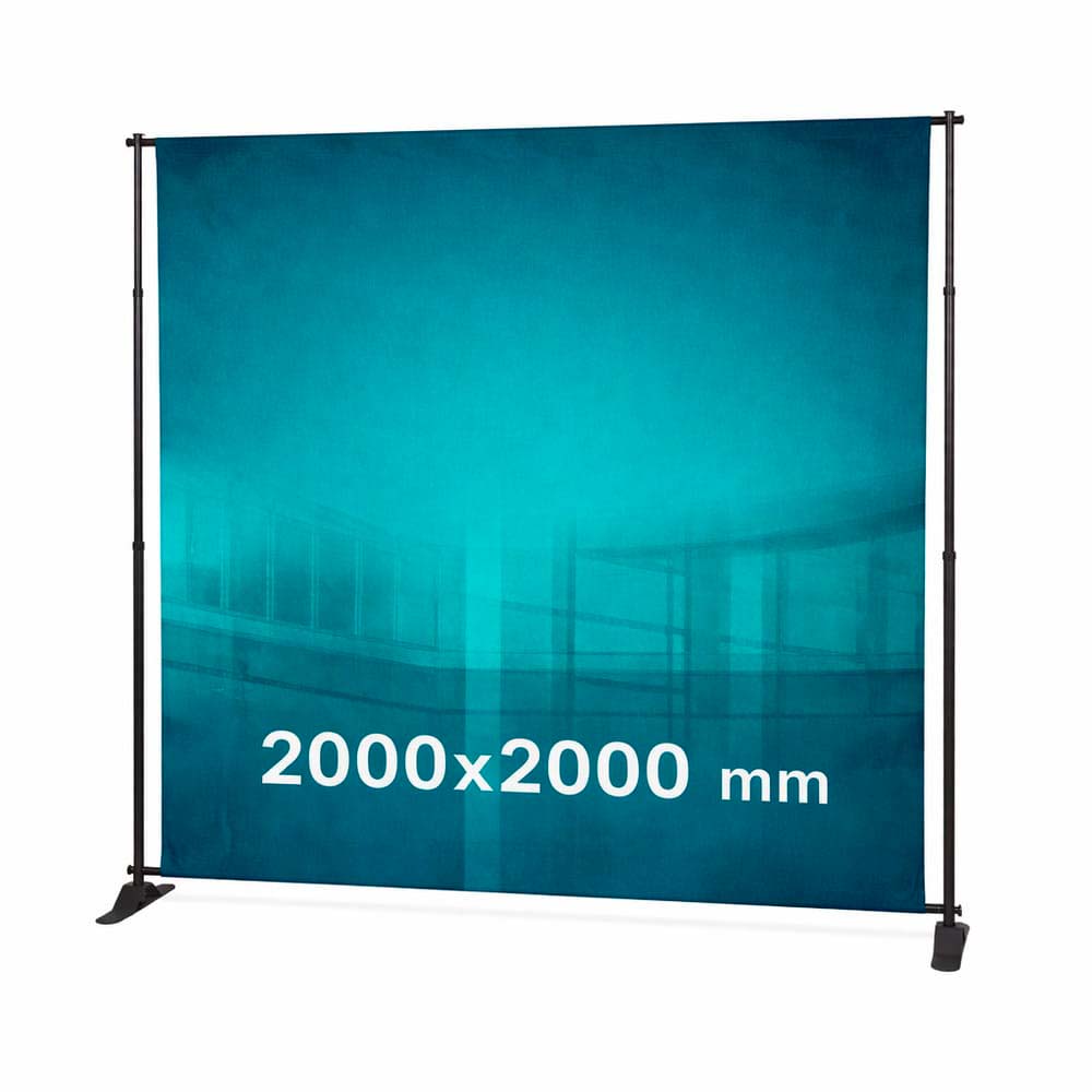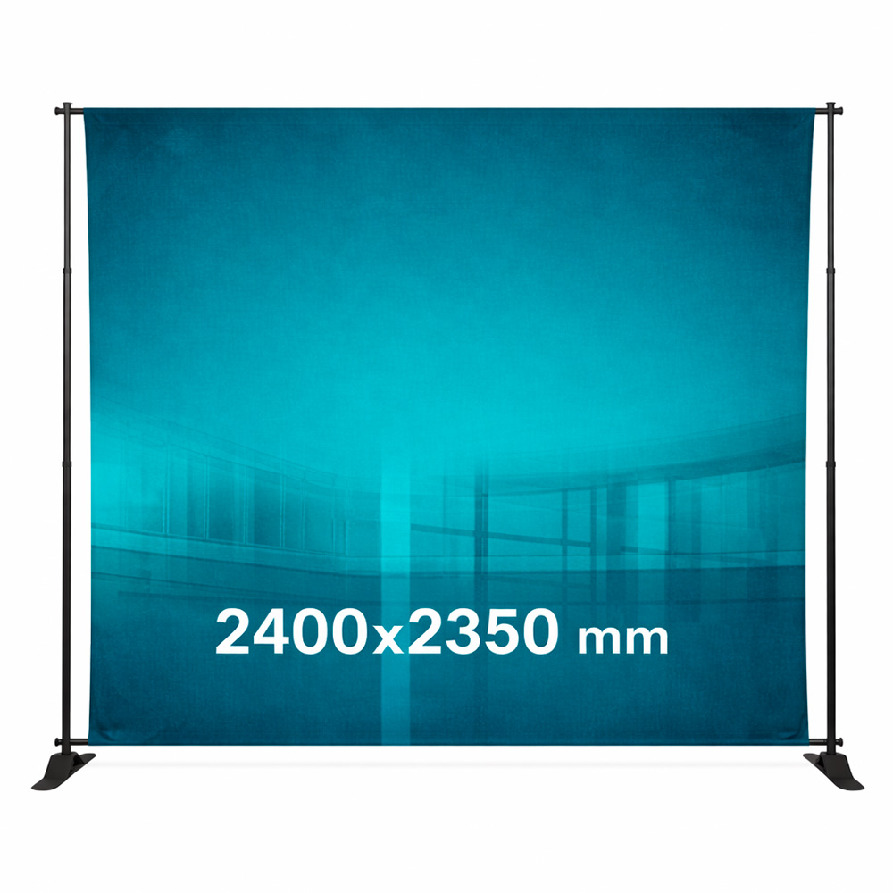 Den teleskopiska konstruktionen i aluminium gör väggen stabil även i större format, samtidigt som den är smidig att montera och flytta. Du justerar storleken utan verktyg och kan använda samma stativ även om du byter grafik eller vill ändra formatet. Vill du komplettera med andra storlekar på tygbannern hittar du detta under tillbehör.