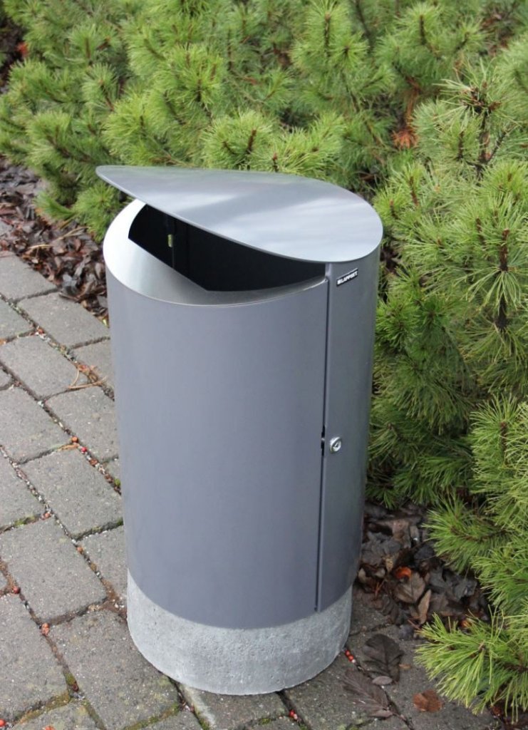 Kita papperskorg 100L är en stor rejäl och väldesignad papperskorg. Den snyggt designade toppen ger även utmärkt skydd mot regn och snö och det förhindrar att fåglar tar sig in i skräpkorgen på ett effektivt sätt. Skräpkorg Kita är av mycket hög kvalité. Underhållet är mycket genomtänkt samt också ergonomiskt löst genom en öppningsbar front för att enkelt byta påse. Kita skräpkorg är tillverkad i 2 mm galvaniserat och pulverlackerad stål. Färg och betongfundament som monteringsalternativ går att välja under tillval.