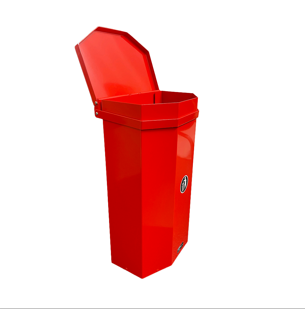Denna papperskorg kallas hos andra leverantörer för papperskorg tilt samt papperskorg rosen. Denna papperskorg för utomhusbruk finns även i en modell som rymmer 60 liter. Perfekt för platser med mycket trafik.