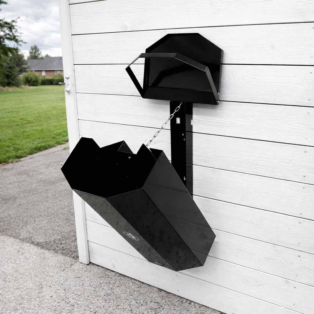 För att frigöra plastpåsen fälls bygeln upp och korgen lutas 45 grader framåt i en tilt. Tillverkad av varmförzinkad och pulverlackerad stålplåt. Är ni ute efter den mest hållbara papperskorgen med smartaste funktionen så är detta ert val! Finns alltid i lager för omgående leverans!