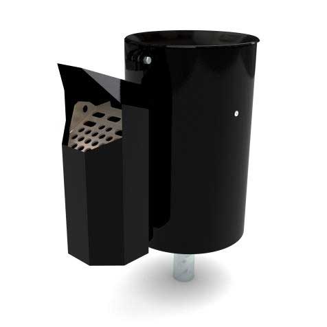 Papperskorg Poppel 25 liter Svart med askkopp. Stolpe (750 mm) ingår.