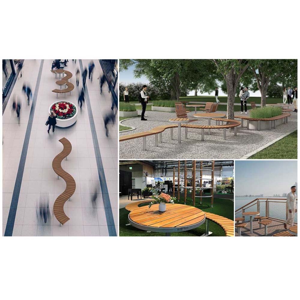 Med breda ribbor i FSC-certifierad furu och robust stålstomme kombinerar den bekväm sittning med lång hållbarhet. Träet kan väljas i barkbrun lasyr eller värmebehandlat utförande, och stommen i galvaniserat eller svart pulverlackerat stål.