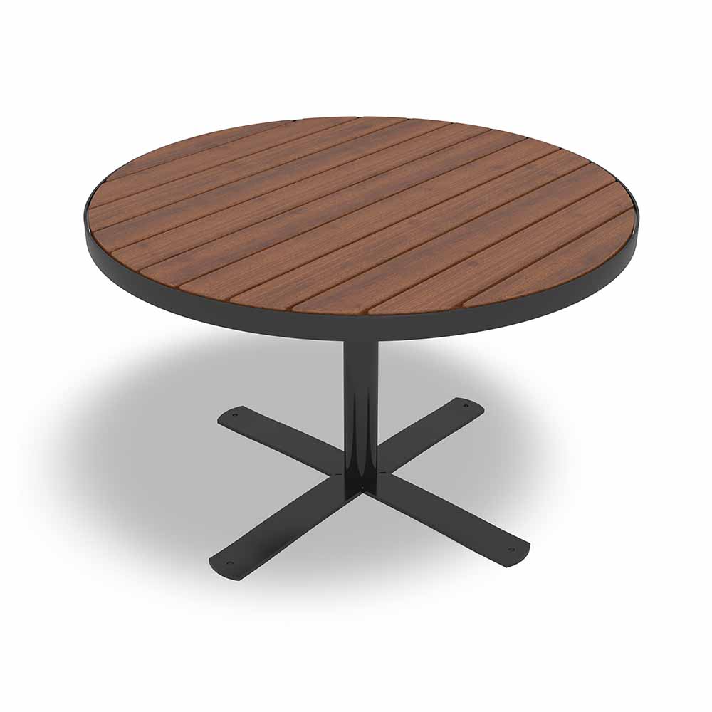 Upptäck det stilrena parkbordet Sofiero - ett runt utebord med en diameter på 110 cm som är perfekt för offentliga miljöer som parker, stadsmiljöer samt vid innergårdar på t ex BRF och hyreshus. Detta runda utebord är fristående och tillverkat av träskyddsbehandlat skandinaviskt furu och kan fås med en galvaniserad eller pulverlackerad svart stomme samt i värmebehandlat furu eller i barkbrun vattenbaserad lasyr.