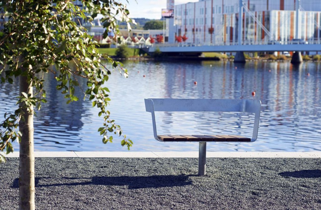 Parksoffa som är roterande. En originell, tvåsitsig parksoffa i stilren och modern design som passar perfekt att monteras där det finns fin utsikt i parker, campingplatser och annan utomhusmiljö.