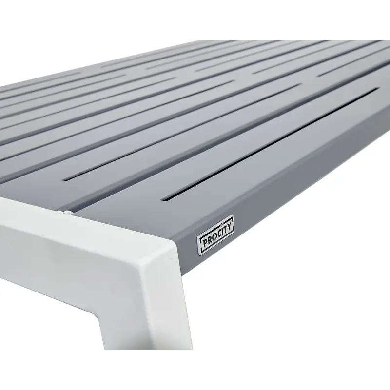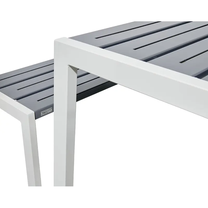 Bordsskivan är tillverkad i 2 mm vikt stålplåt som är galvaniserad och lackerad för lång livslängd. Den stabila stommen i 40 × 60 mm stålrör är zinkgrundad och pulverlackerad i vald kulör.