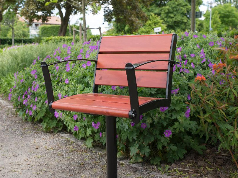 Snurrstol Nifo med armstöd är en parkmöbel av trä och stål som med fastgjutning monteras ner i backen. Sitsen och ryggstödet på parkstol Nifo är av furu och stommen är tillverkad i stål. Denna parkmöbel är hypertrendig och modern. Byggt för offentlig parkmiljö och är en del av Nifo parkmöbel serie så det finns andra parkmöbler att kombinera ihop sin egna parkmiljö. Parkfåtöljen finns i flera färgval för både trä och ståldetaljer.