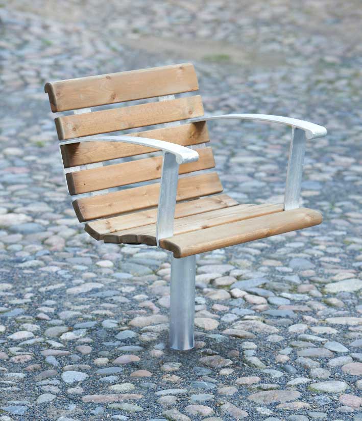 Material: Galvat stål, Trä