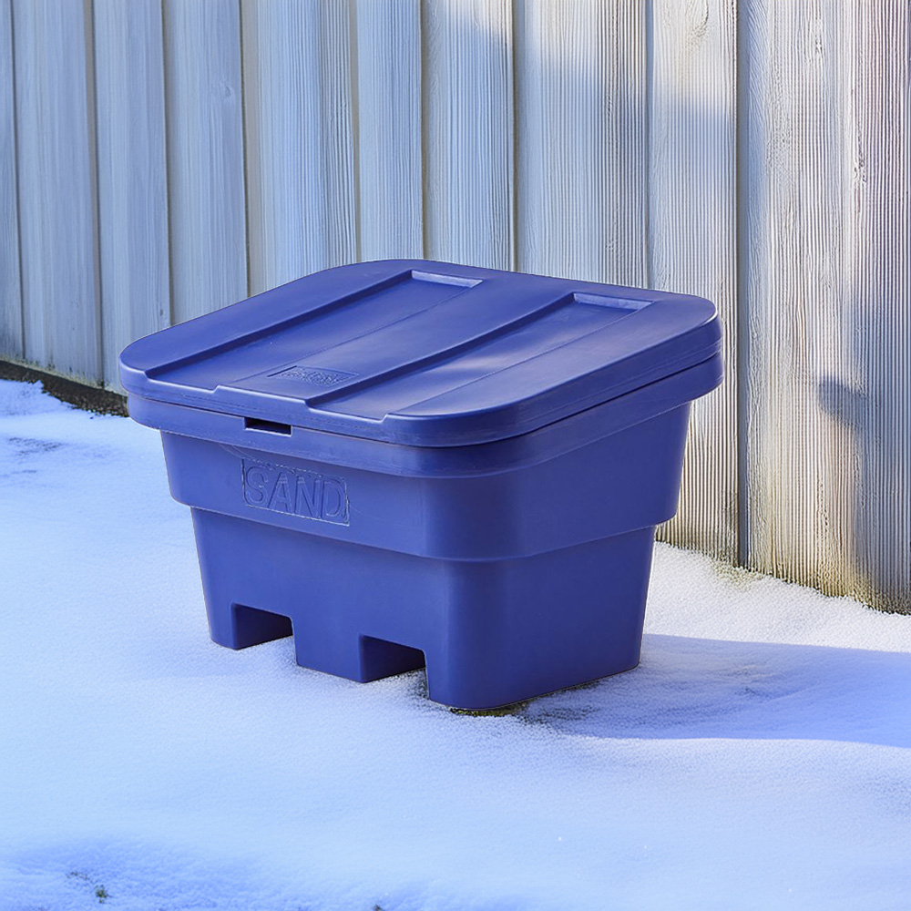 Med en generös kapacitet på 300 liter rymmer denna modell tillräckligt med sand för att klara även de mest krävande vintrarna. Sandningslådan kan dessutom användas som förvaringslåda för redskap, vilket gör den mångsidig och praktisk under hela året. När den inte används kan den smidigt staplas för platsbesparande förvaring.