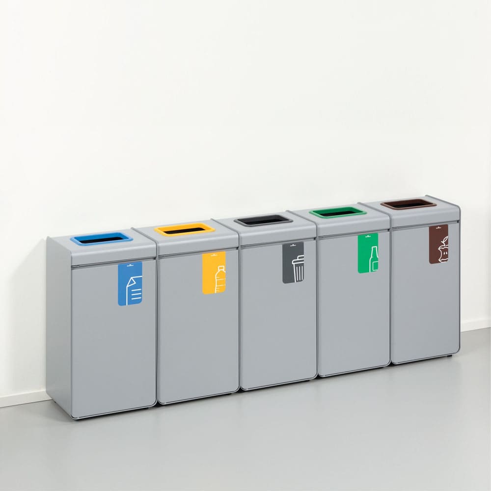 Ett professionellt återvinningskärl som passar perfekt i skolor, entréer, företag, matsalar och andra offentliga inomhusmiljöer.