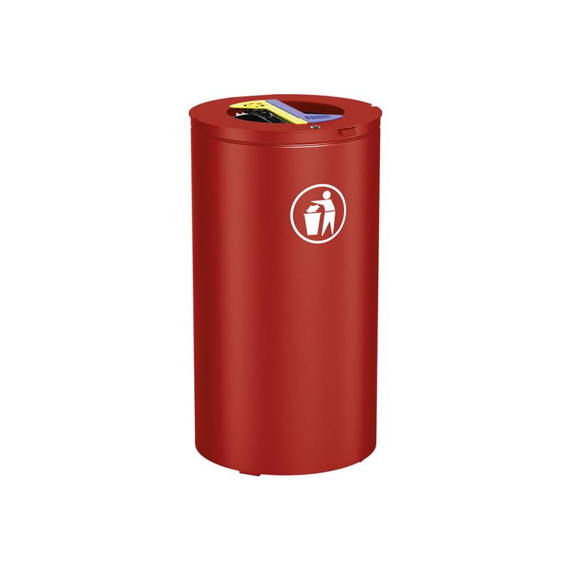 Kärlet är uppbyggt i stål och plåt med ett hölje i 2 mm tjock plåt. Locket är utrustat med trekantslås för säker hantering och levereras med självhäftande piktogram som visar sorteringsfraktioner. Detta underlättar både användning och skötsel.